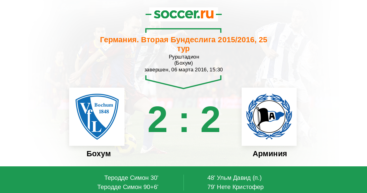 Протокол матча Бохум против Арминия