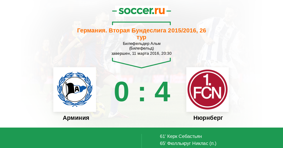 Протокол матча Арминия против Нюрнберг