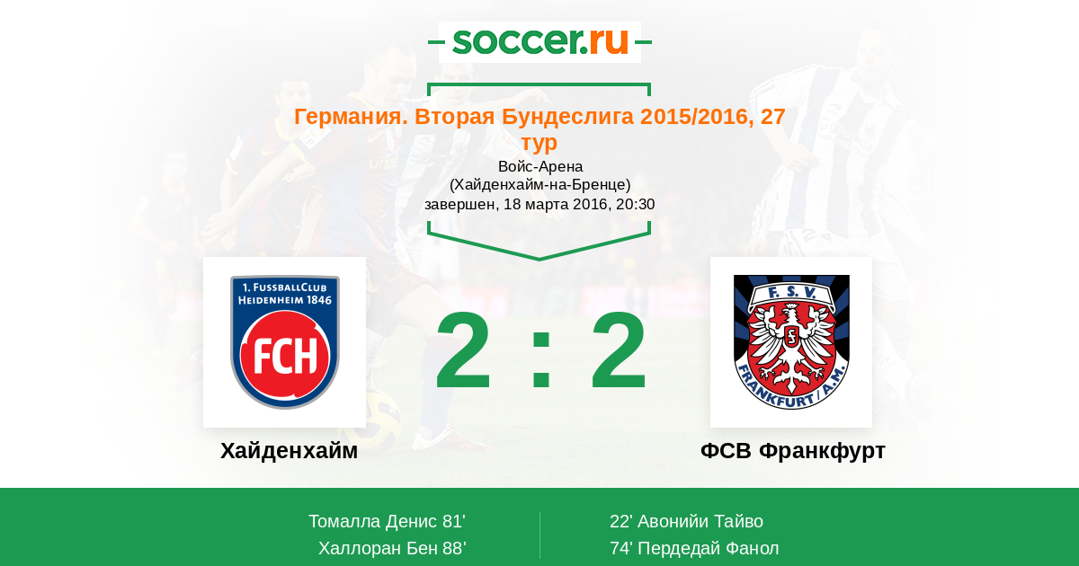 Протокол матча Хайденхайм против ФСВ Франкфурт
