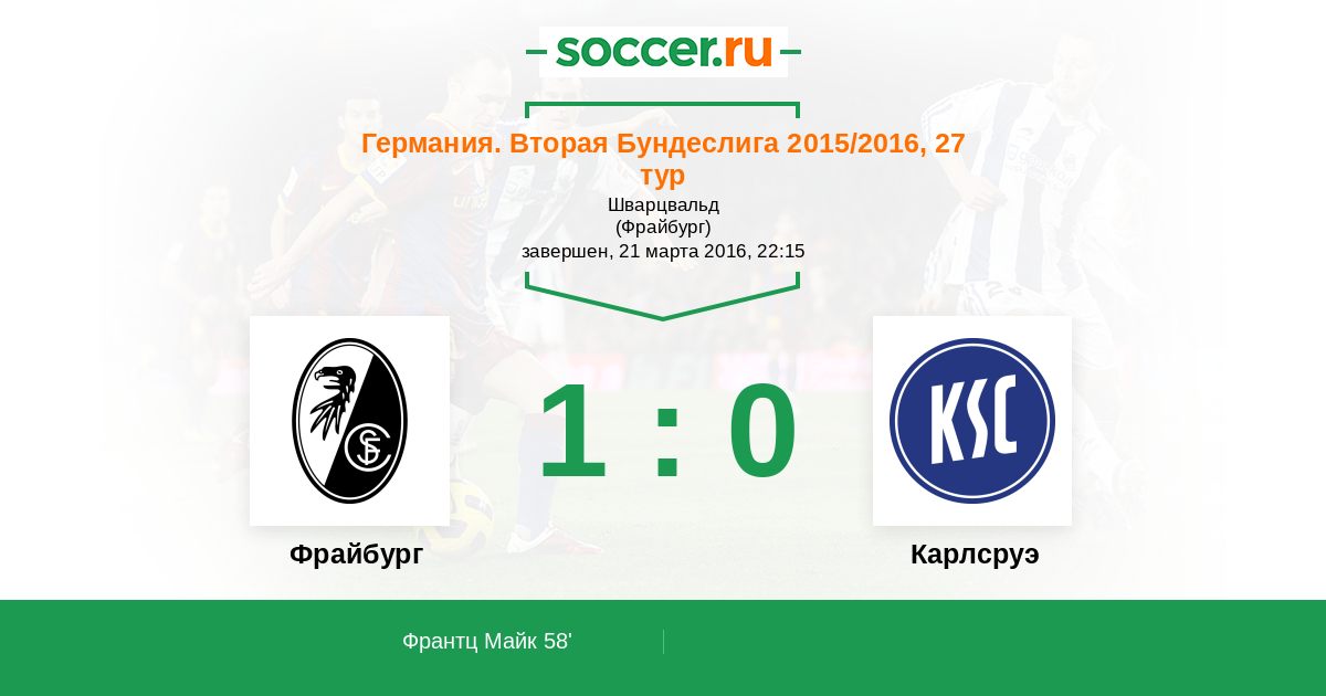 58' (1:0) Франтц Майк (8) (Грифо Винченцо (32))