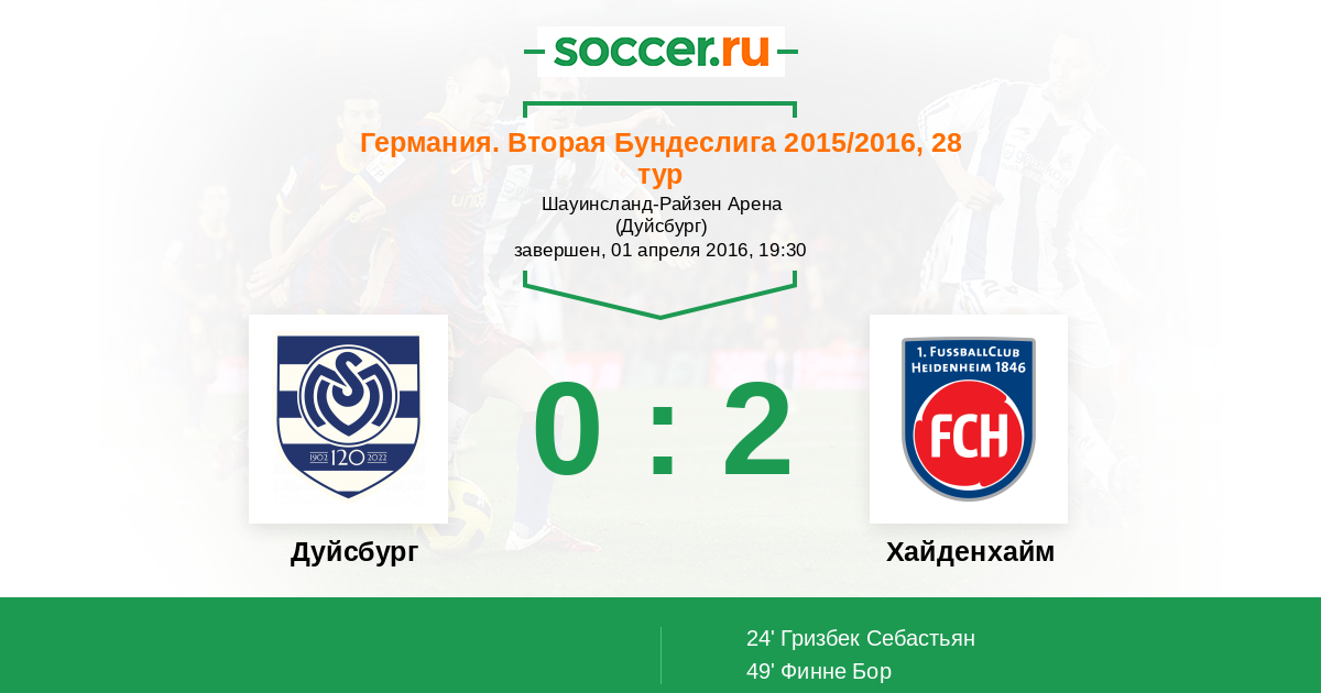 24' (0:1) Гризбек Себастьян (18) (Файк Арне (28))