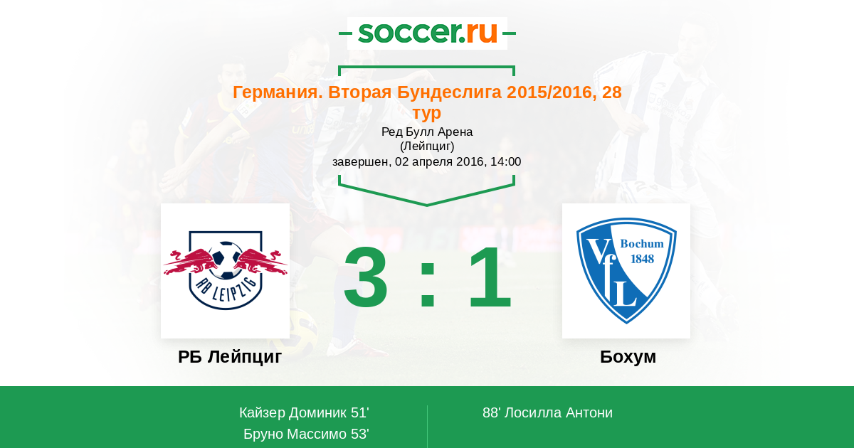 Протокол матча РБ Лейпциг против Бохум