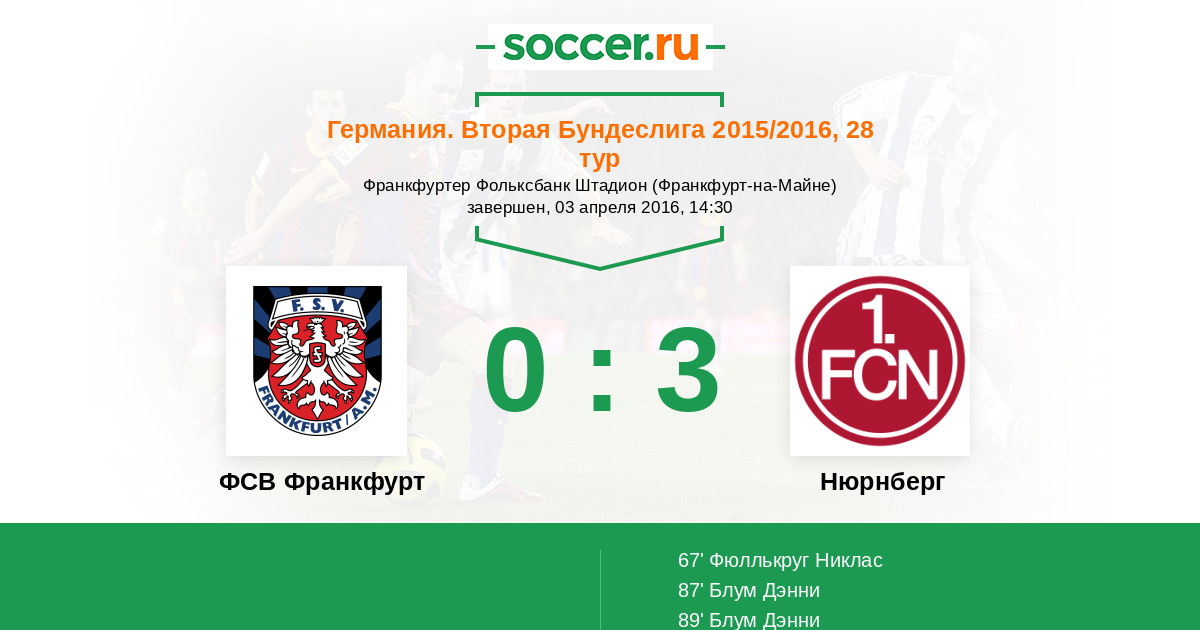Протокол матча ФСВ Франкфурт против Нюрнберг