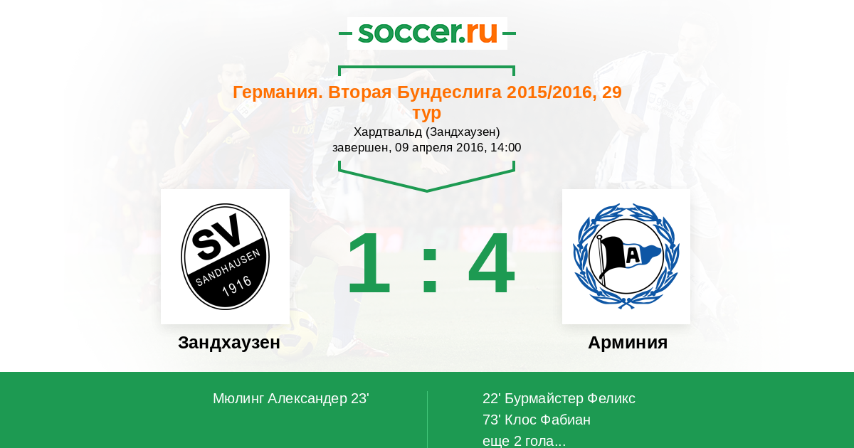 Протокол матча Зандхаузен против Арминия