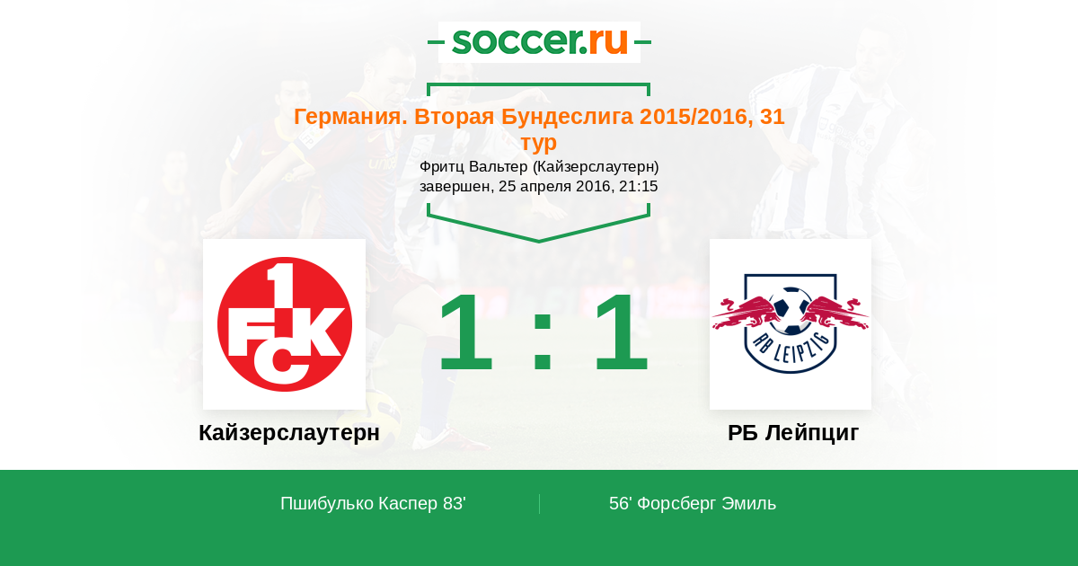 Протокол матча Кайзерслаутерн против РБ Лейпциг