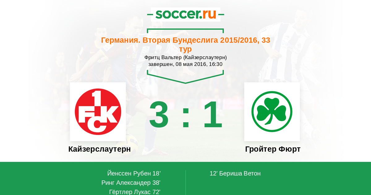 Протокол матча Кайзерслаутерн против Гройтер Фюрт
