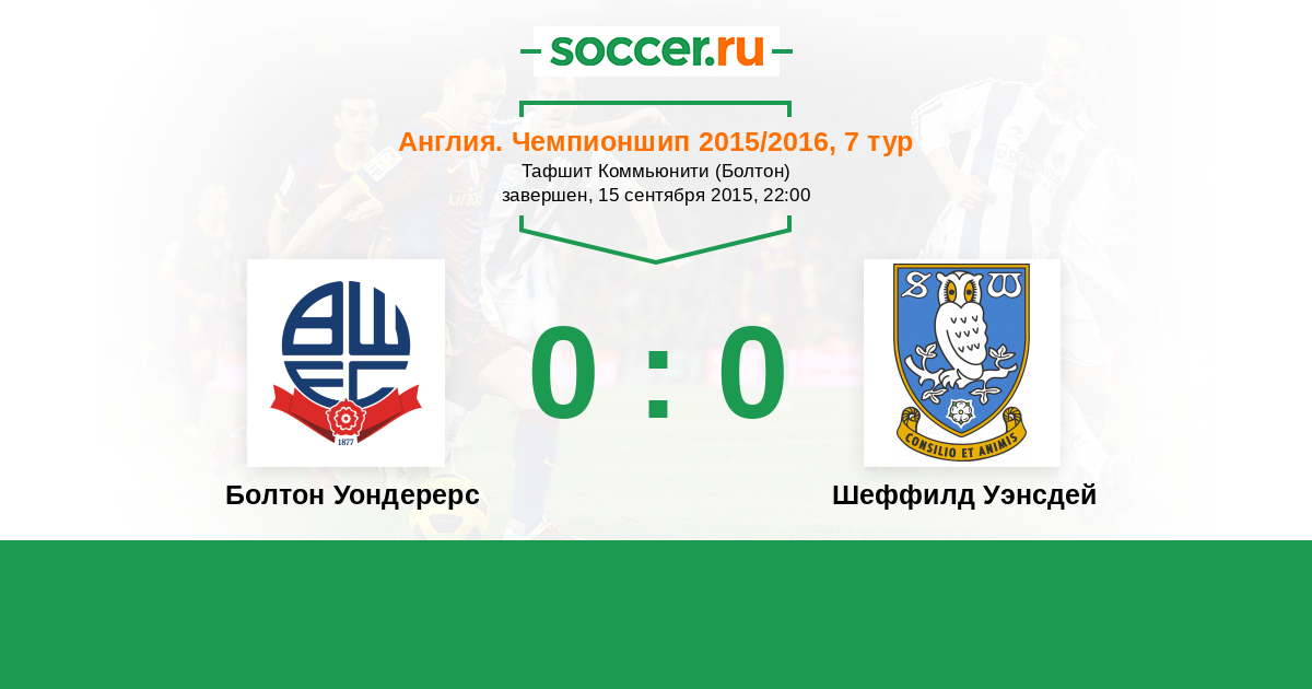 Протокол матча Болтон Уондерерс против Шеффилд Уэнсдей