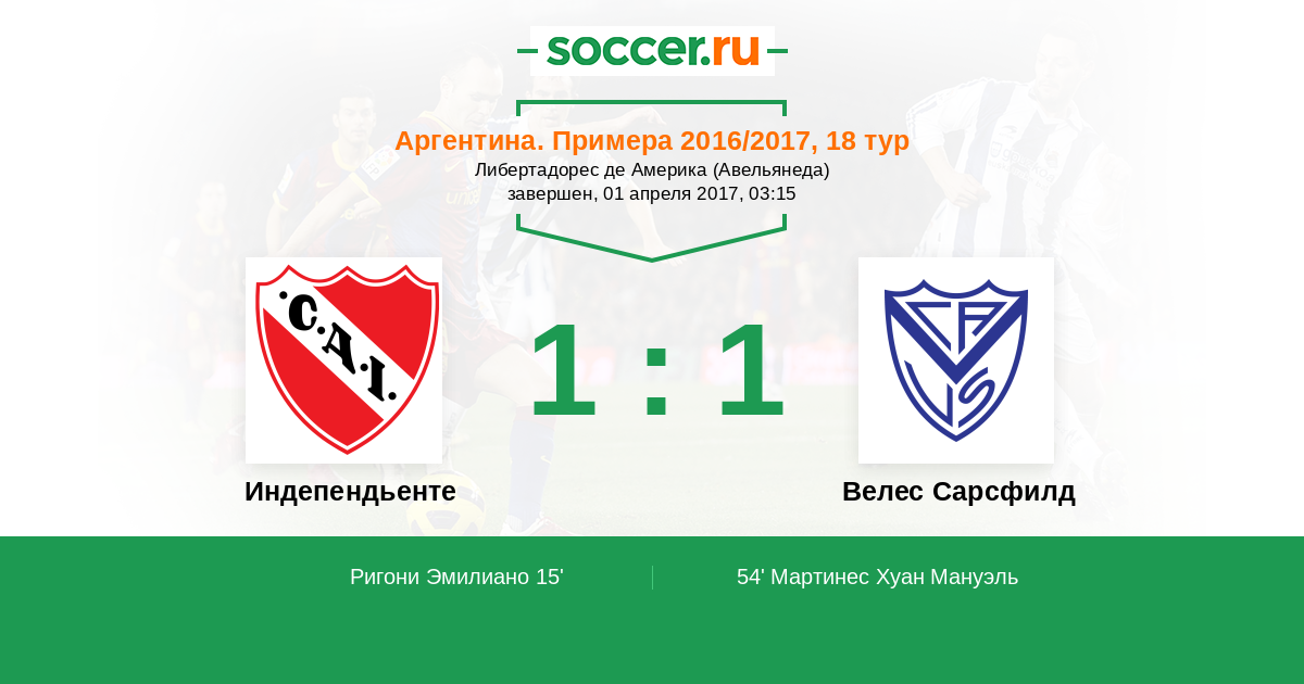 Протокол матча Индепендьенте против Велес Сарсфилд