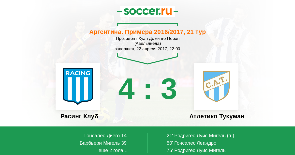 Протокол матча Расинг Клуб против Атлетико Тукуман