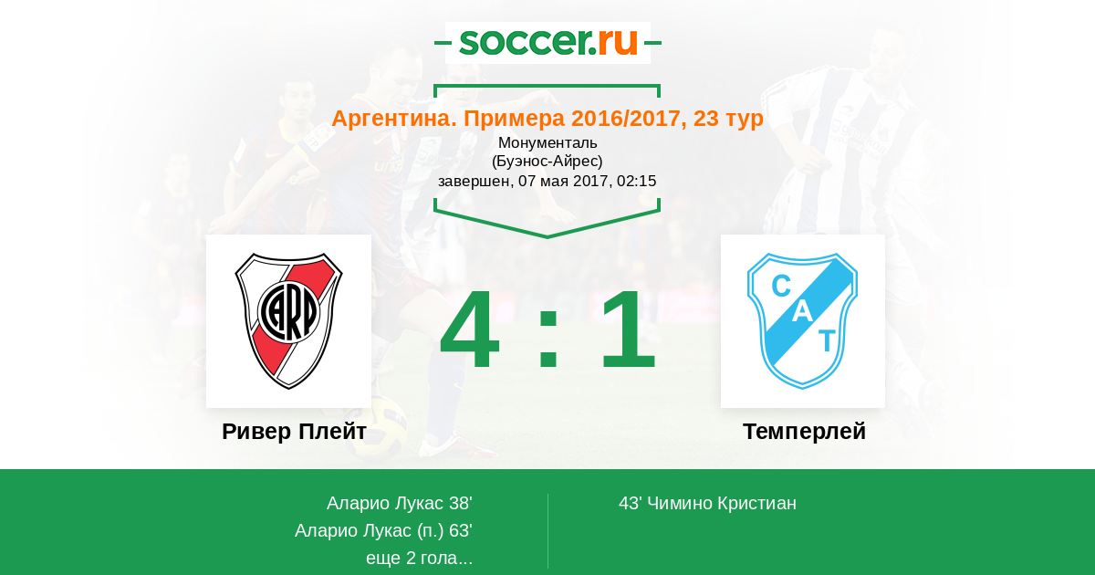 Протокол матча Ривер Плейт против Темперлей