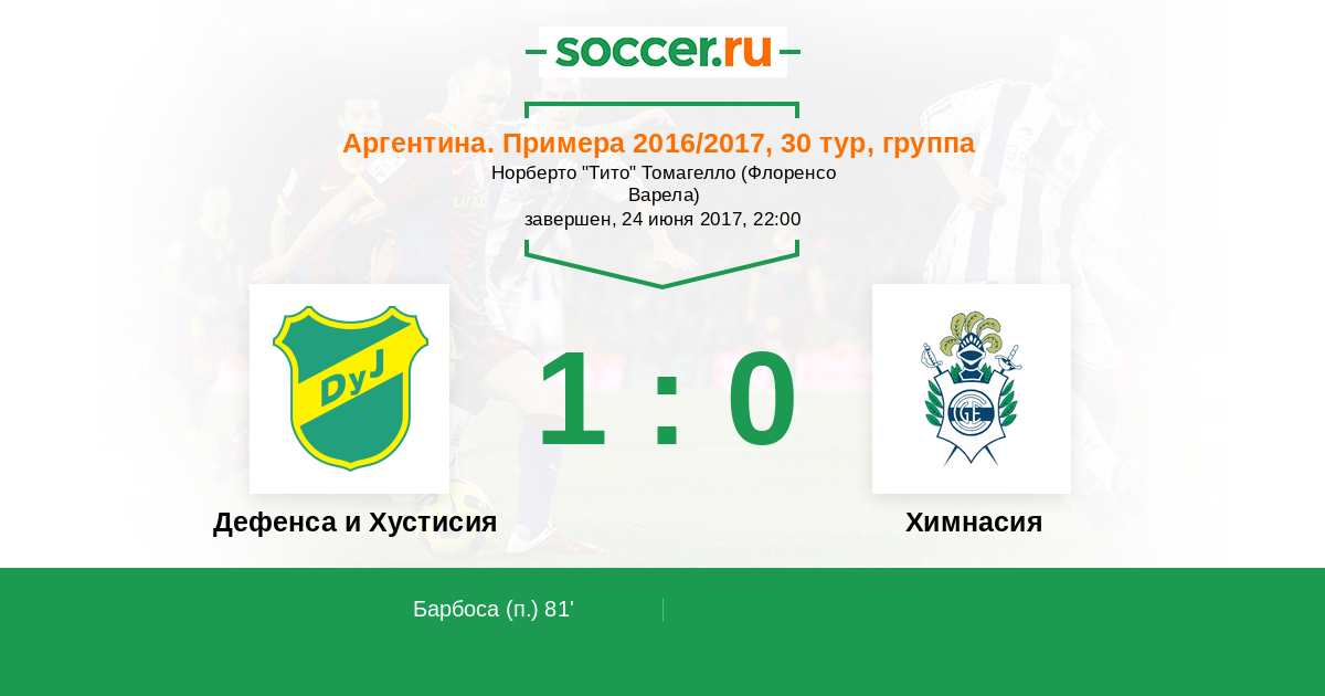Протокол матча Дефенса и Хустисия против Химнасия