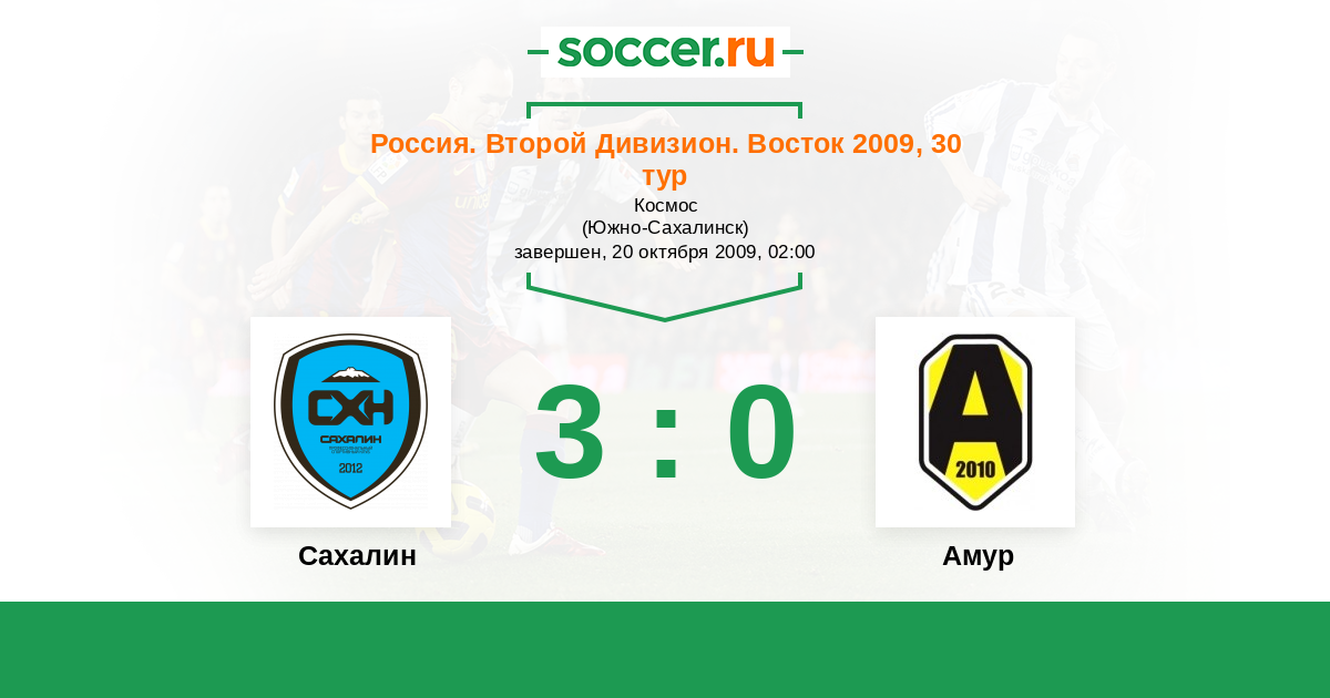 Россия. 2-й дивизион. Восток 01.08.2009 Амур Логотип футбольный клуб Амур  (Благовещенск) 2:2 Логотип футбольный клуб Сахалин (Южно-Сахалинск) Сахалин