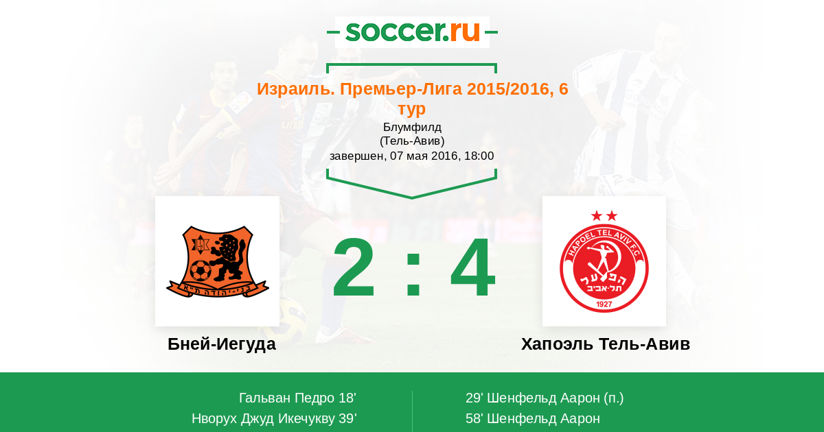 Протокол матча Бней-Иегуда против Хапоэль Тель-Авив