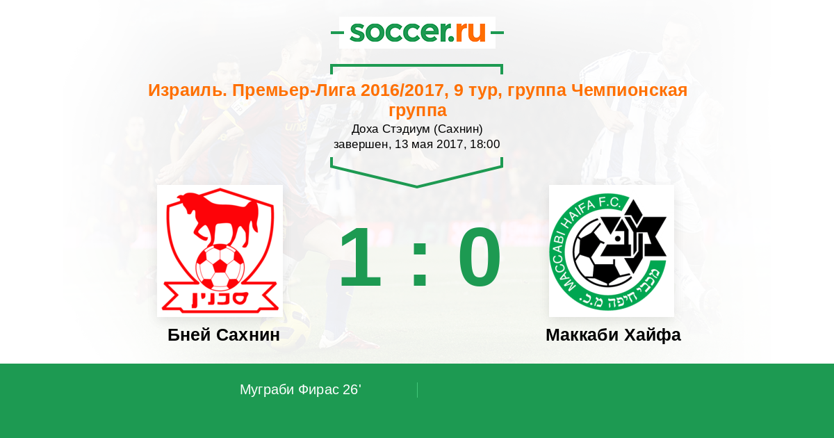 Протокол матча Бней Сахнин против Маккаби Хайфа