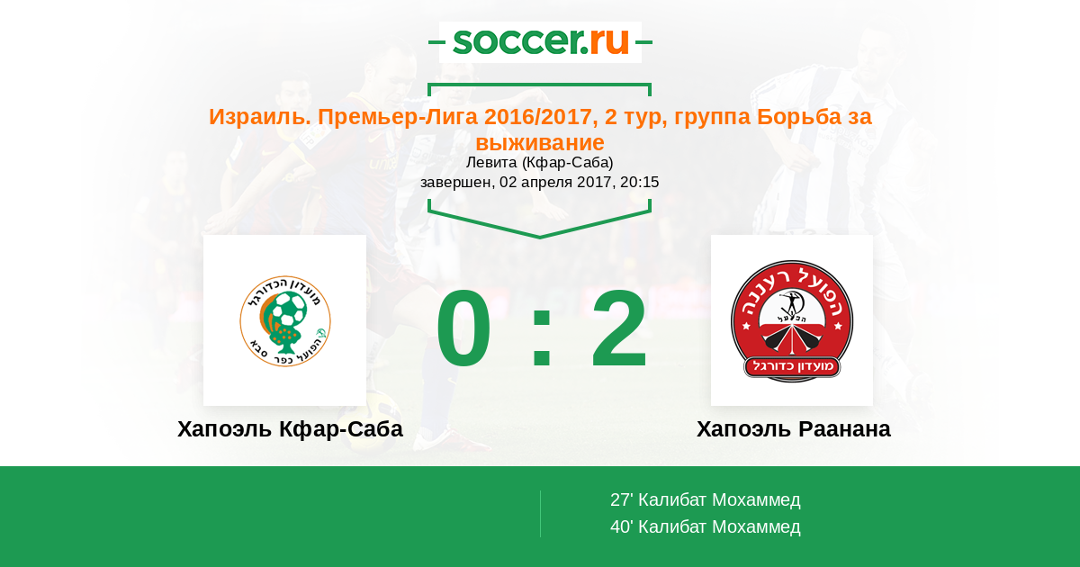 Протокол матча Хапоэль Кфар-Саба против Хапоэль Раанана