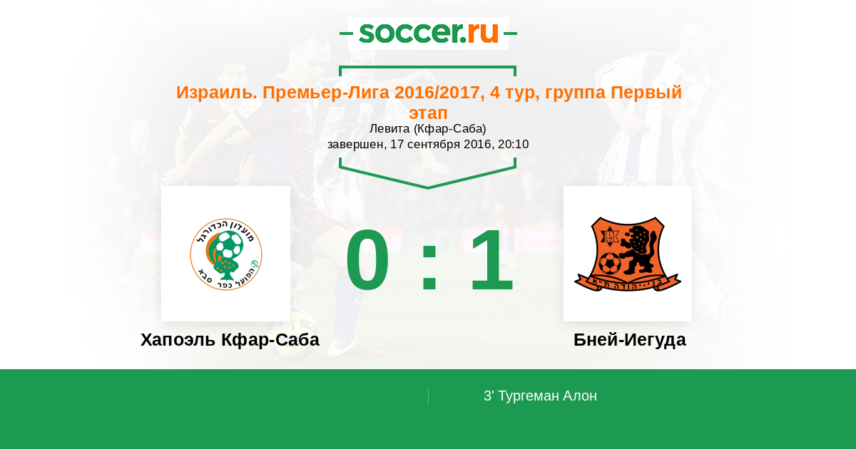Протокол матча Хапоэль Кфар-Саба против Бней-Иегуда