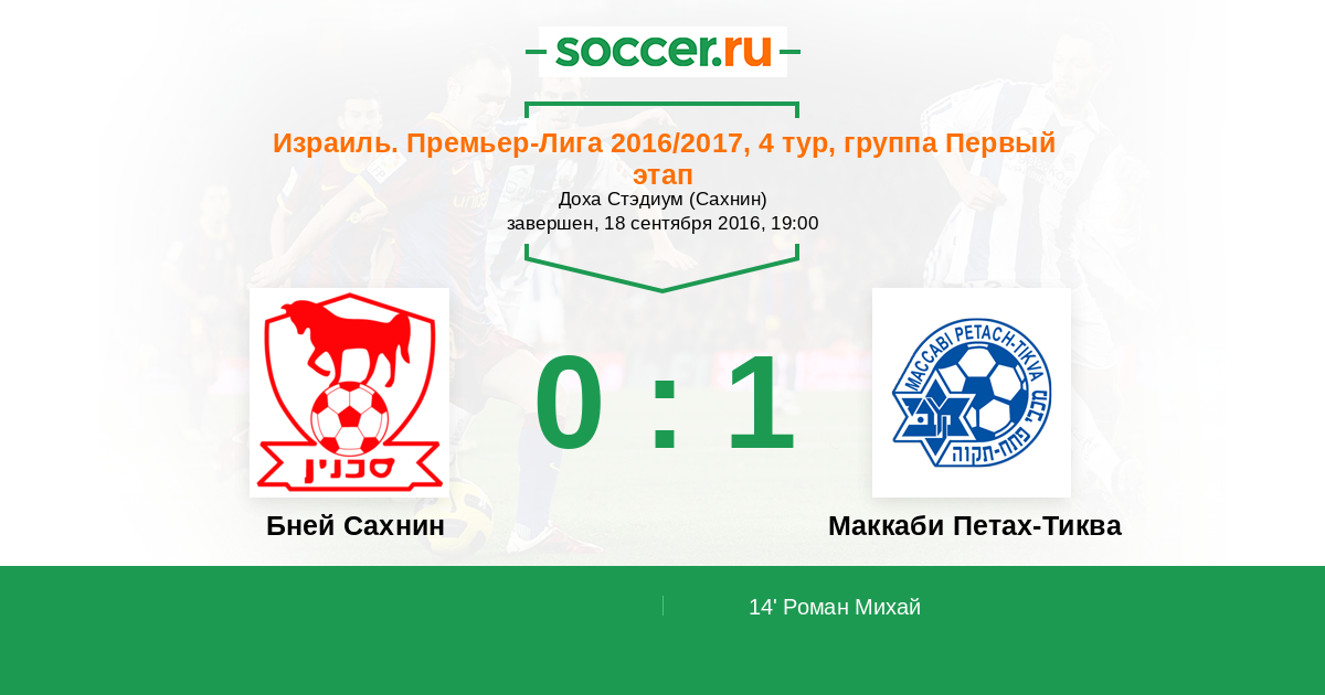 Протокол матча Бней Сахнин против Маккаби Петах-Тиква