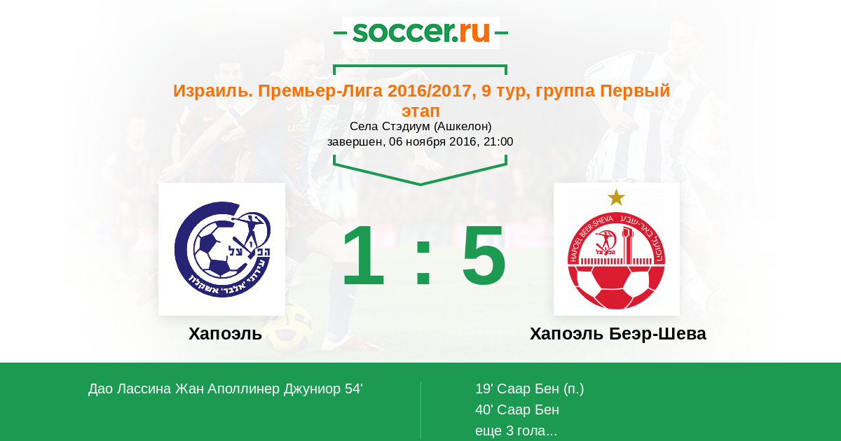 Протокол матча Хапоэль против Хапоэль Беэр-Шева
