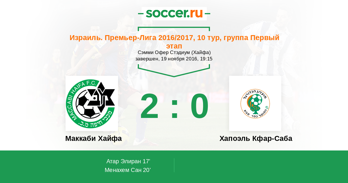 Протокол матча Маккаби Хайфа против Хапоэль Кфар-Саба