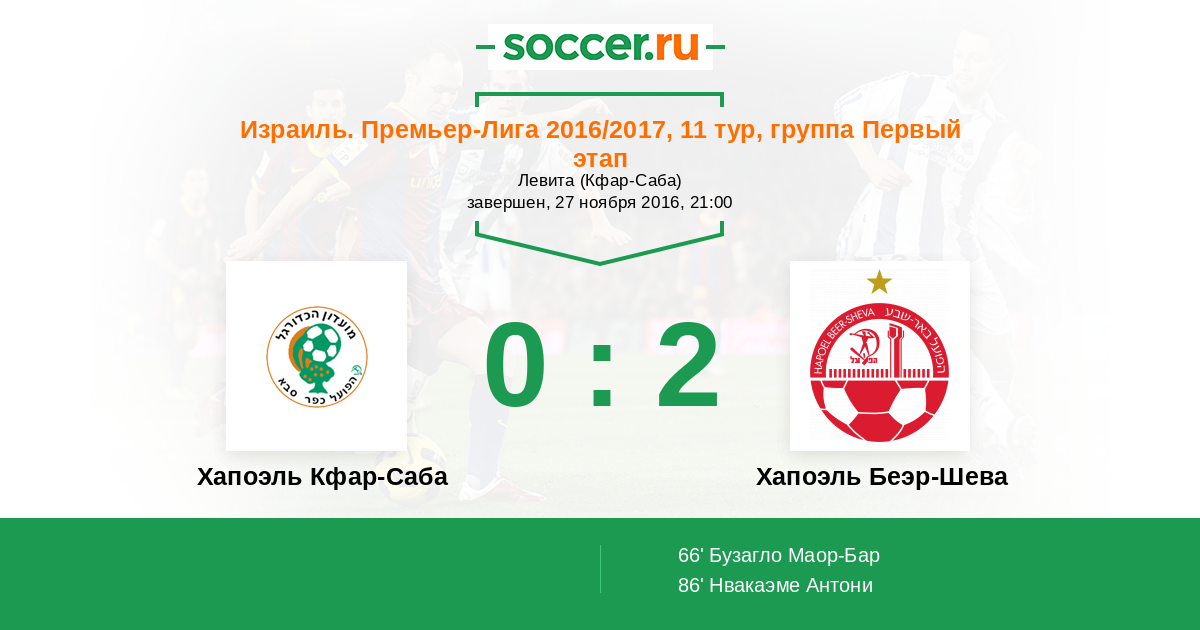 Протокол матча Хапоэль Кфар-Саба против Хапоэль Беэр-Шева