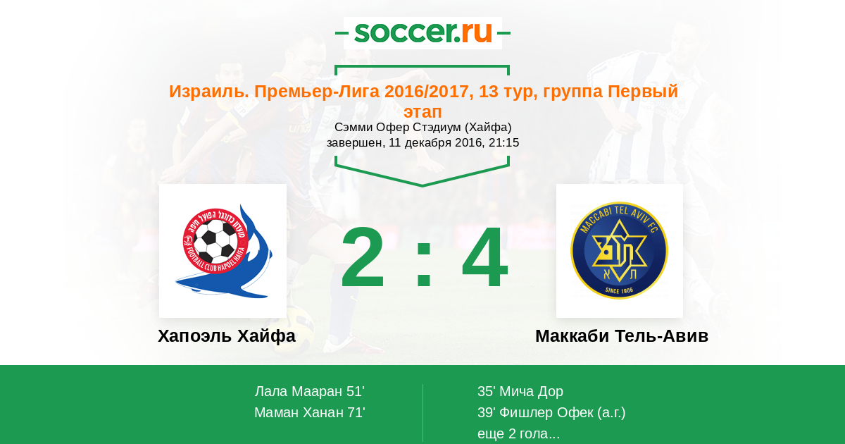 Протокол матча Хапоэль Хайфа против Маккаби Тель-Авив