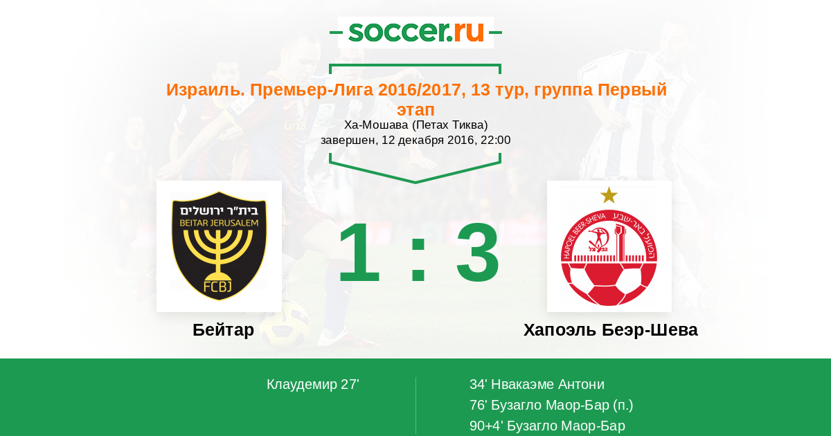 Протокол матча Бейтар против Хапоэль Беэр-Шева