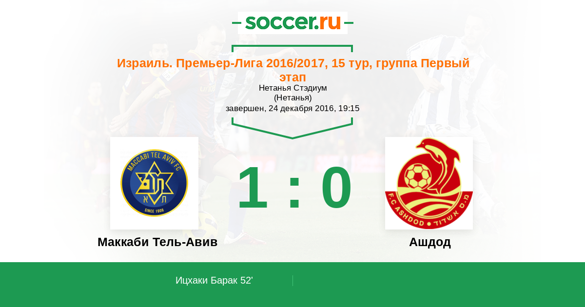 Протокол матча Маккаби Тель-Авив против Ашдод