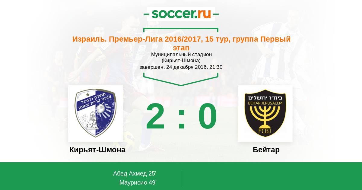 Протокол матча Кирьят-Шмона против Бейтар