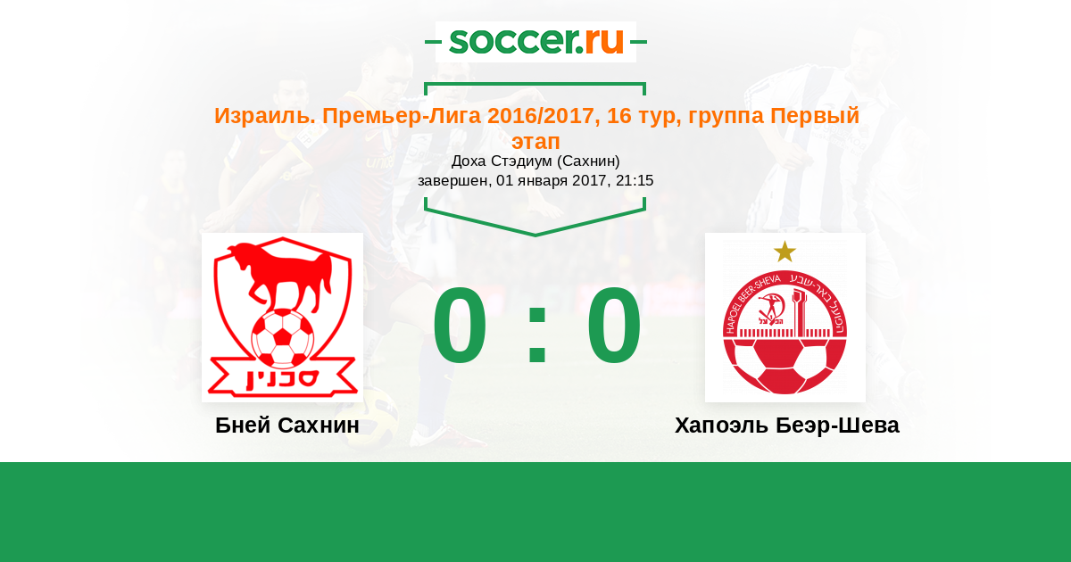 Протокол матча Бней Сахнин против Хапоэль Беэр-Шева