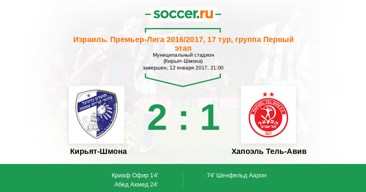 Протокол матча Кирьят-Шмона против Хапоэль Тель-Авив