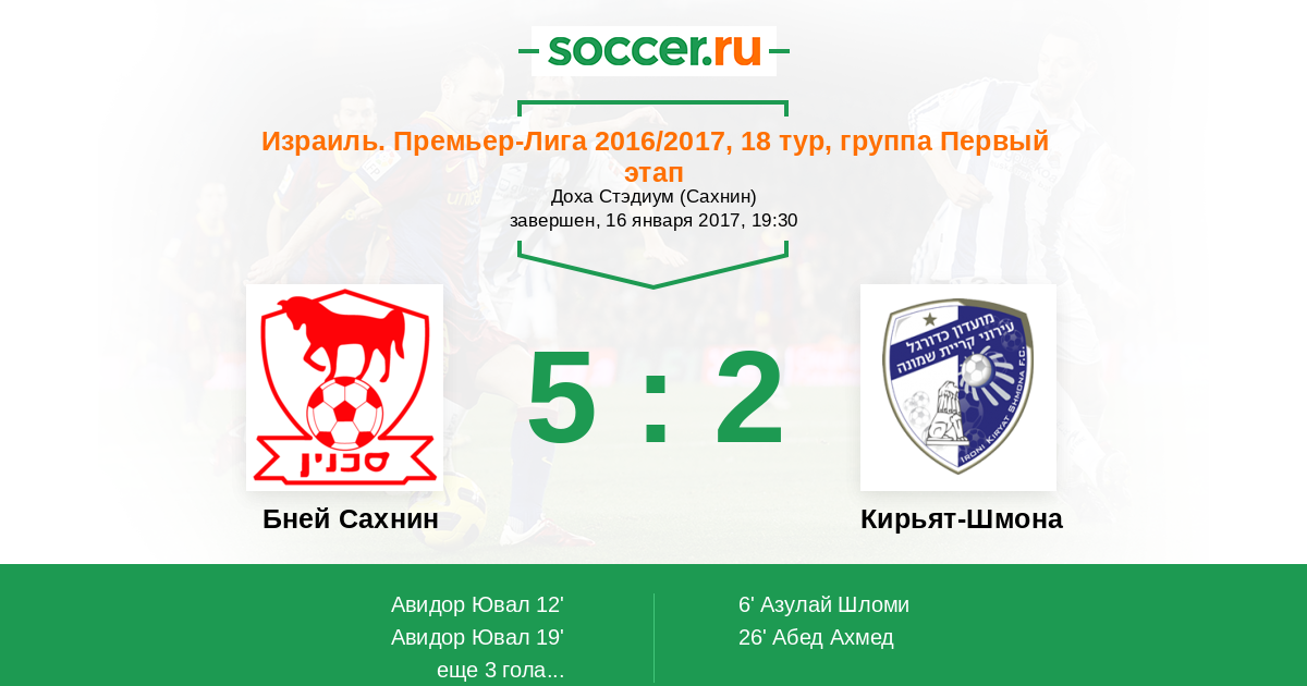 Протокол матча Бней Сахнин против Кирьят-Шмона