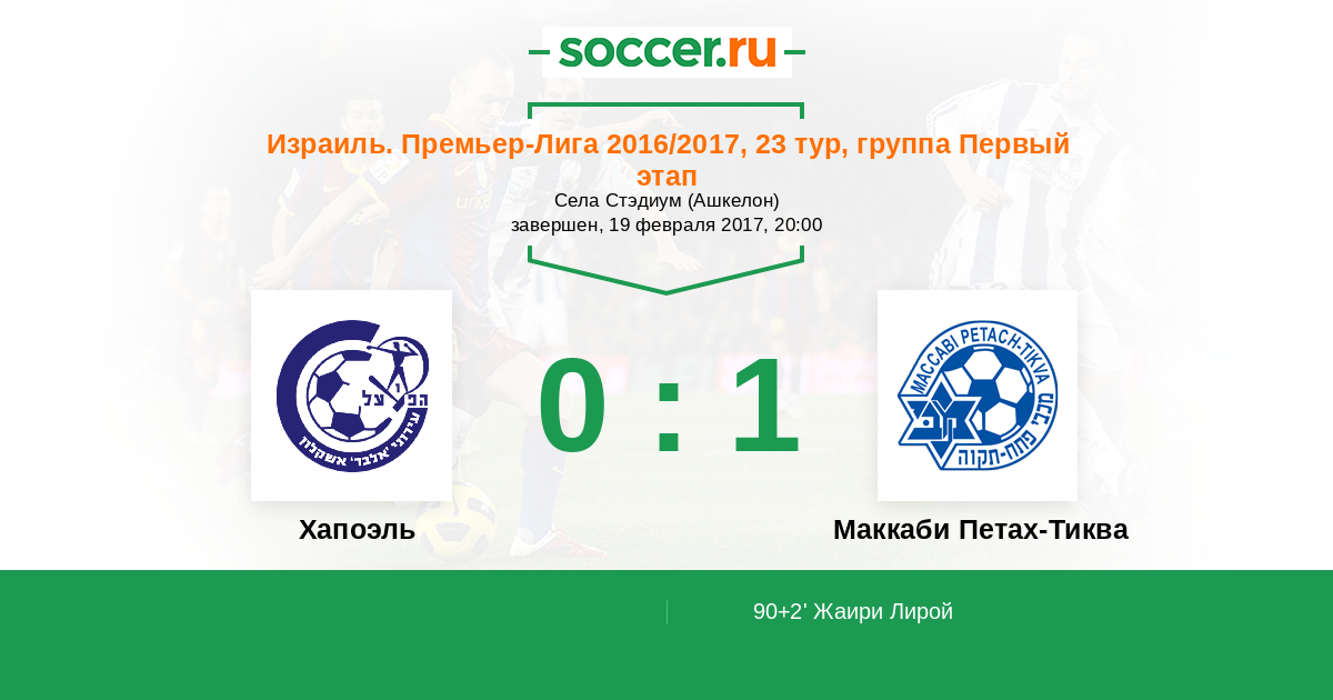 Протокол матча Хапоэль против Маккаби Петах-Тиква