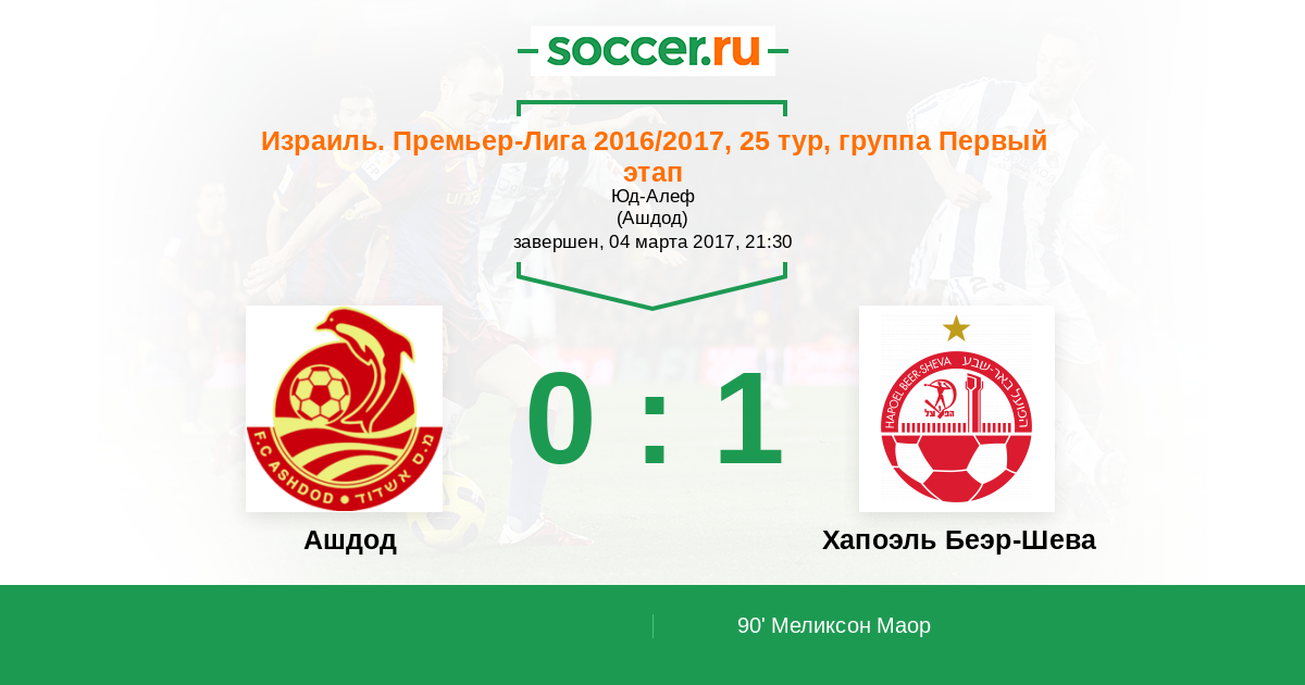 Протокол матча Ашдод против Хапоэль Беэр-Шева