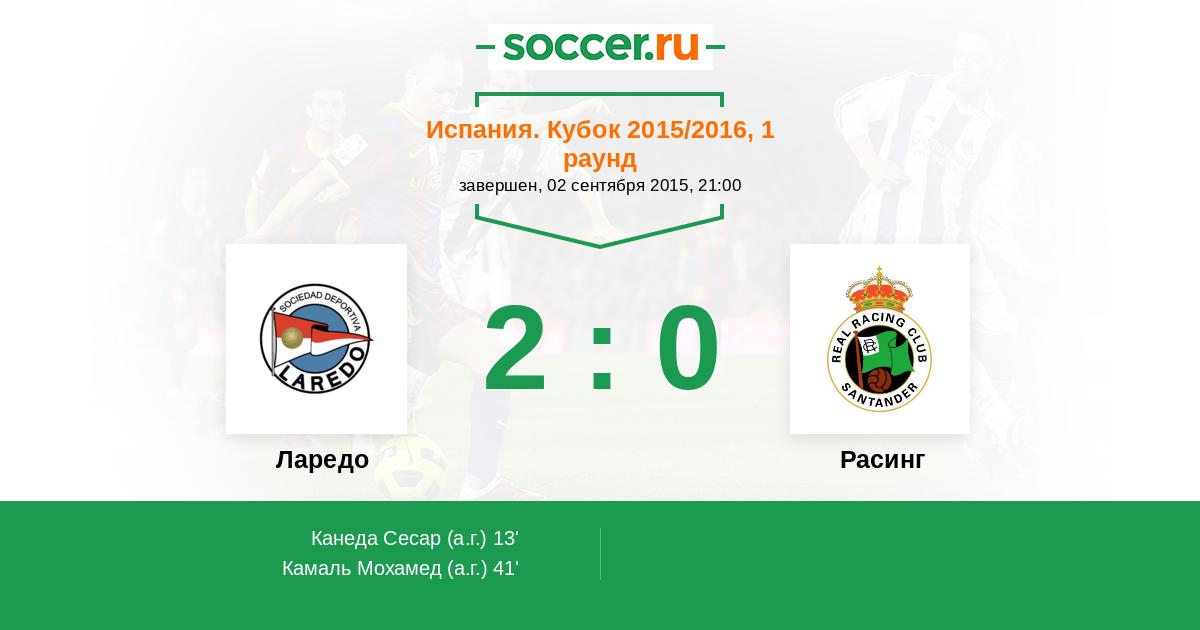 Протокол матча Ларедо против Расинг