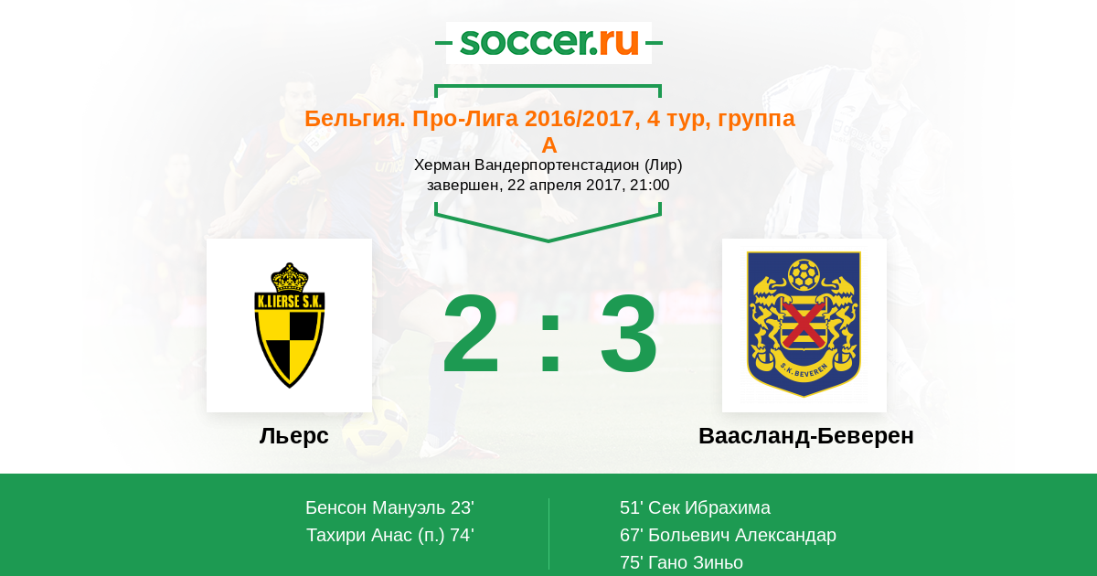 Протокол матча Льерс против Ваасланд-Беверен