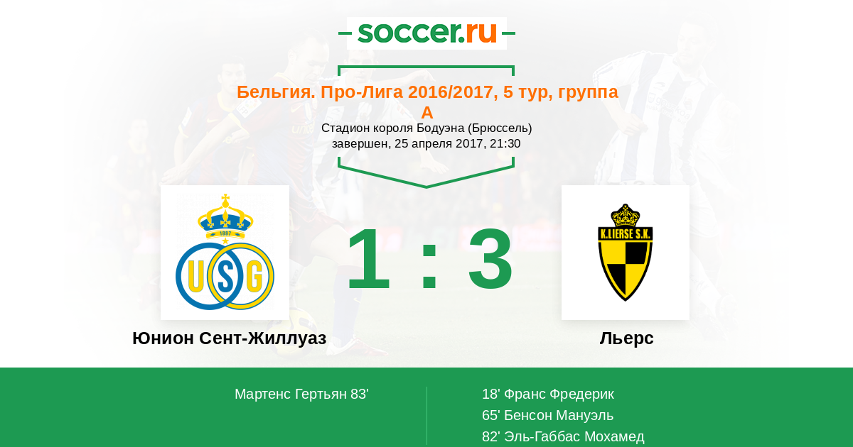 Протокол матча Юнион Сент-Жиллуаз против Льерс