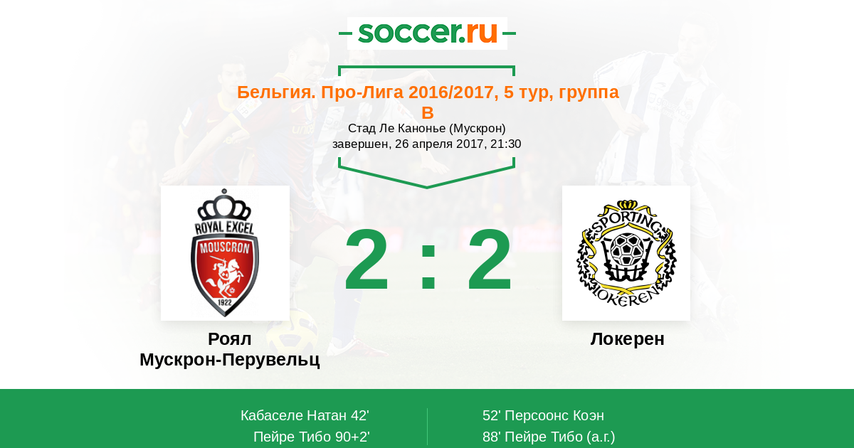 Протокол матча Роял Мускрон-Перувельц против Локерен
