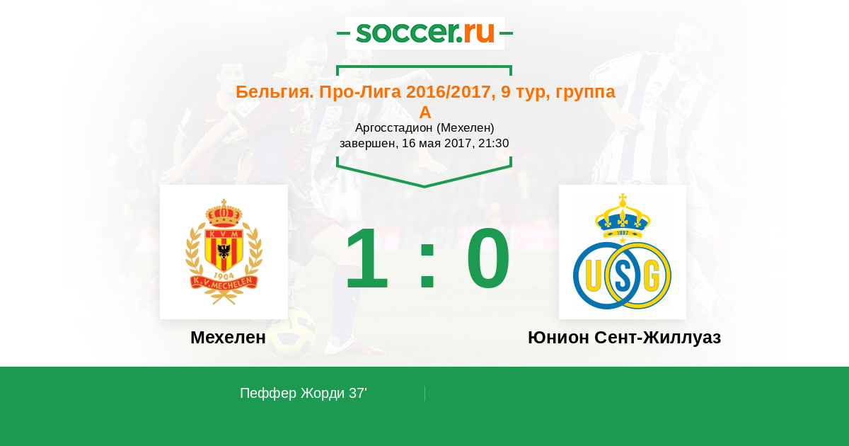 Протокол матча Мехелен против Юнион Сент-Жиллуаз