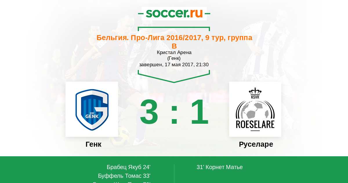 31' (1:1) Корнет Матье (24) (Леком Рафаэль (9))