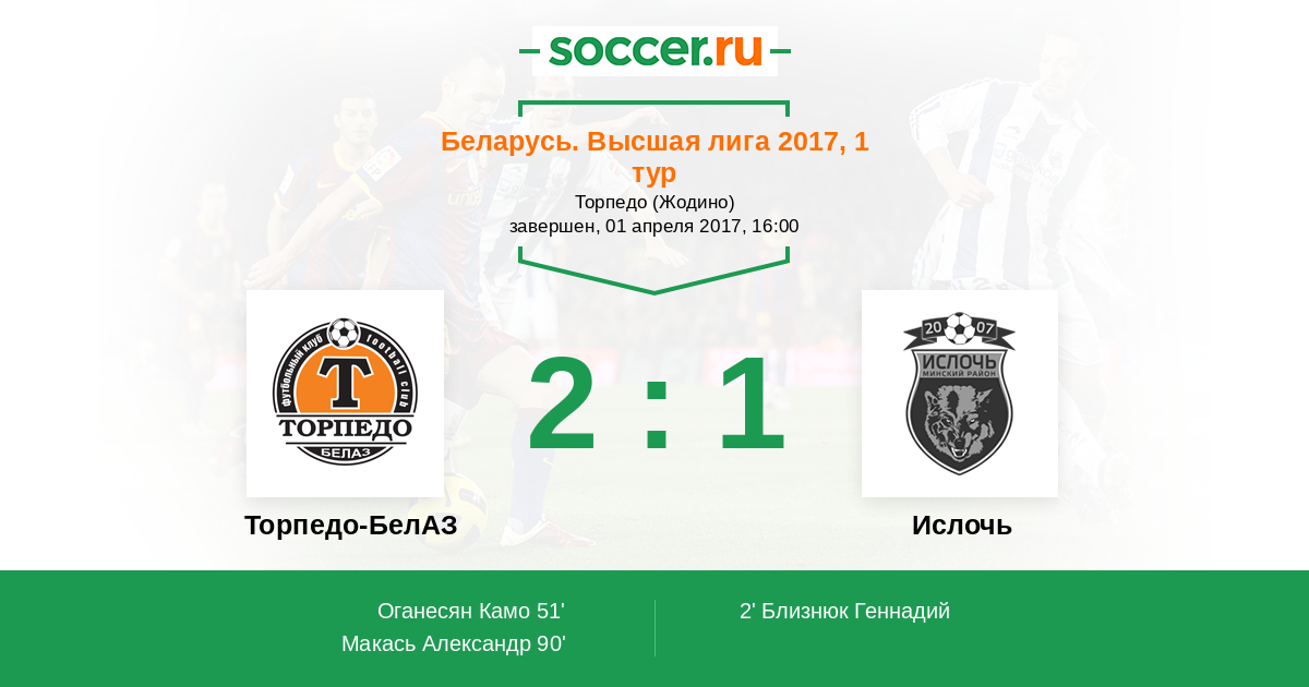 Протокол матча Торпедо-БелАЗ против Ислочь