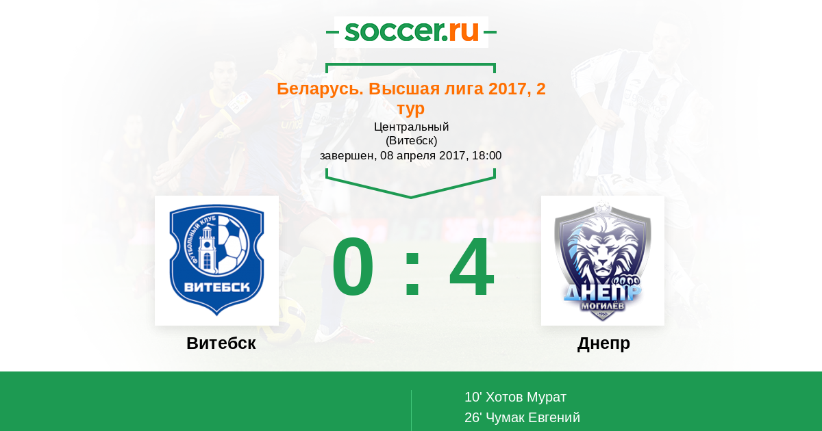 Протокол матча Витебск против Днепр