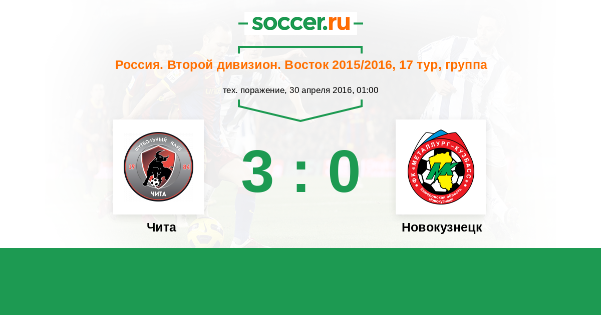 Россия. 2-й дивизион. Восток 30.04.2016 Чита   3:0   Новокузнецк