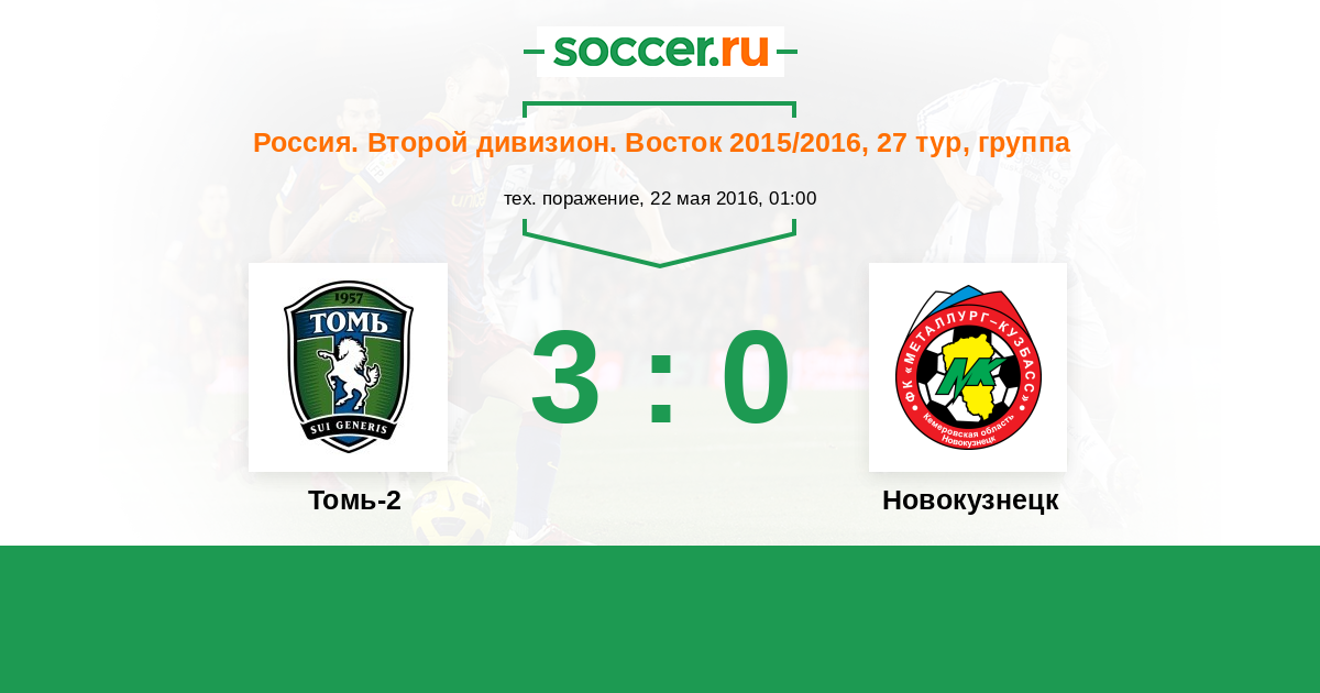 Россия. 2-й дивизион. Восток 22.05.2016 Томь-2 Логотип футбольный клуб Томь-2 (Томск) 3:0 Логотип футбольный клуб Новокузнецк Новокузнецк