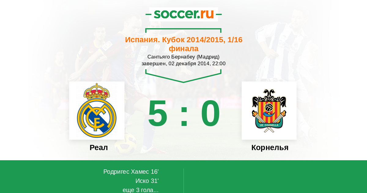 Протокол матча Реал против Корнелья