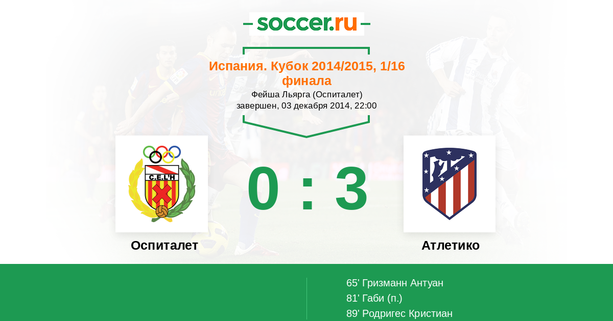 Протокол матча Оспиталет против Атлетико