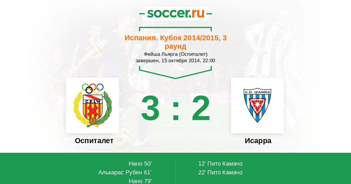 Протокол матча Оспиталет против Исарра