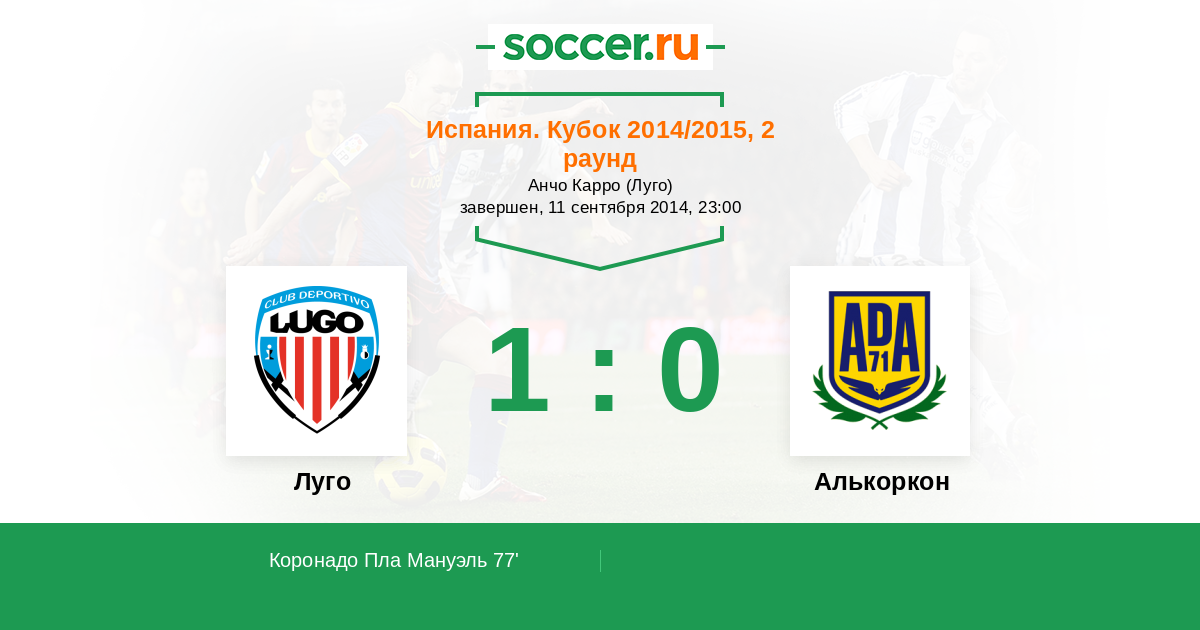Протокол матча Луго против Алькоркон