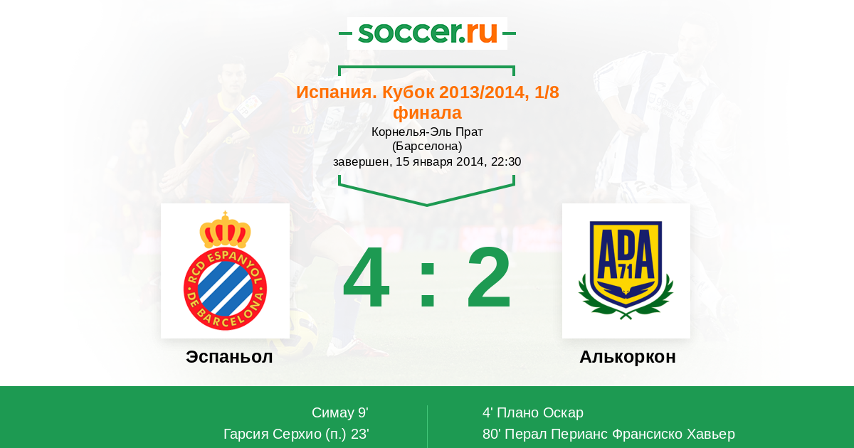 Протокол матча Эспаньол против Алькоркон