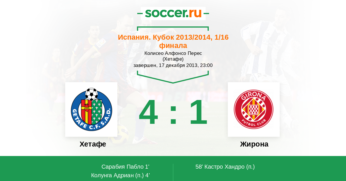 Протокол матча Хетафе против Жирона