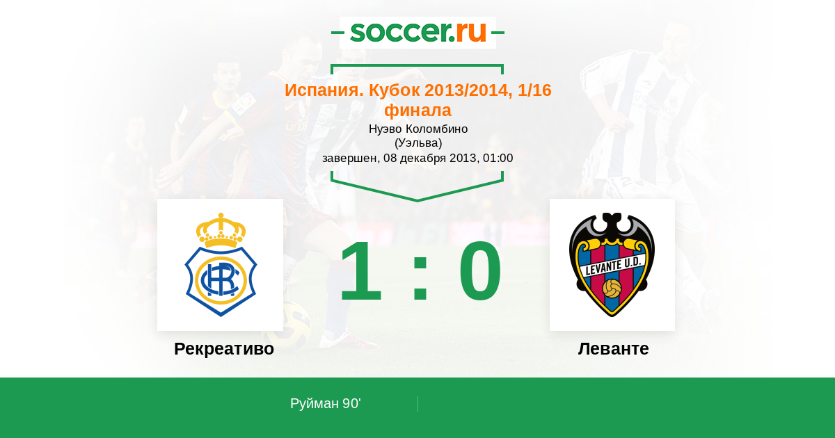 Протокол матча Рекреативо против Леванте
